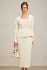 • Conjunto de dos piezas: chaqueta entallada + falda lápiz midi
